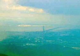 西に緩やかに下ると円形の立派な展望台が建っている。展望台に上がると南に紀ノ川・龍門山群、北には大阪湾から淡路島・六甲山、東西に和泉山脈が連なるが、一瞬にして見えなくなると雨が降りだしてくる。北西の風を避け、ポットの湯でブランデーのお湯割・カップヌードル・生姜湯で暖を取るが手が痛くなるほど寒い(気温を測ると3度だった)。車で来た見学者は直ぐに帰っていく。