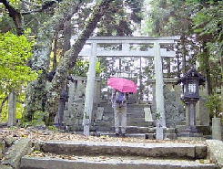 ブナの木が現れると帰り道のBコースと出合う。少し先に鳥居があり長い石段を上ると葛城神社と竜王神社が背中合わせに鎮座している葛城山頂上に着く。