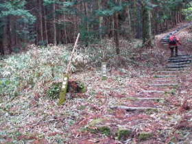 ![]() 鐘楼の横より山道に入る。 |