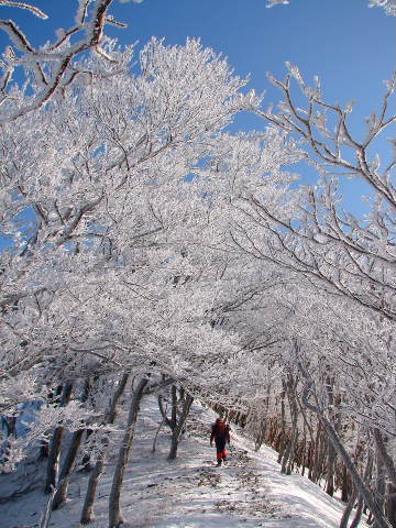 | 今回で10回目の高見山。昨年の極寒登山で高見山は当分登らないと決めたのを忘れていた。 暖かで穏やかな気候での樹氷見学は初めてでは。お陰でゆっくりと見学できた。 |
