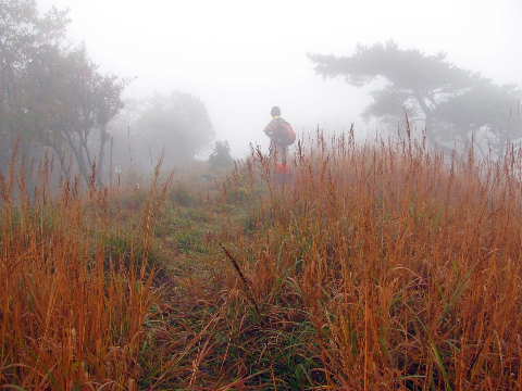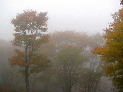 ![]() ⇔ガスが切れてきた。国見山に登る元気が湧く。 |