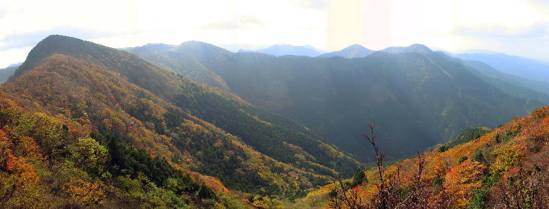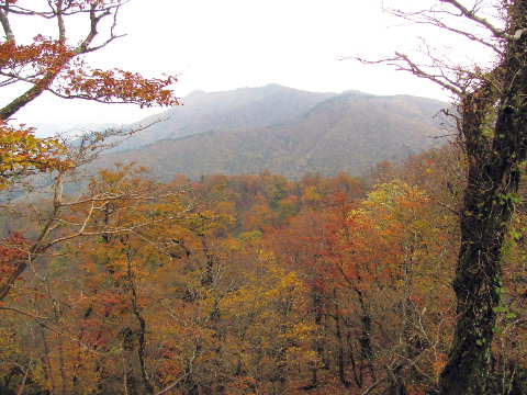国見山へ。東斜面を見ると、ぼんさい平の紅葉が美しい。訪れたいとは思っているのだが、今年も達成できないようだ。