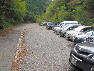 ![]() 車は林道ゲートの駐車場に。自転車で戻る。 |