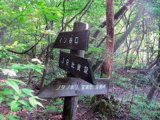 静まり返っているノタノホリに着き小休止する。ノタノホリを右から巻いて裏手の尾根に乗ると、深谷からの道と合流。深く抉れた尾根道を少し登ると、尾根を右から巻く道となり緩やかになる。