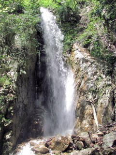 青ガレの堰堤下に着く。以前から地図にある金糞滝が気になっていたので見に行くことにする。堰堤から少し遡上すると直ぐに金糞滝と思われる滝があった。確認はできなかったが間違いないだろう。