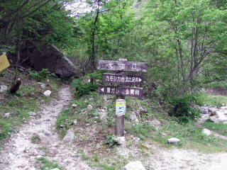 金糞峠には、『正面谷は落石が多いので迂回道を利用してください』の表示があるが、従う者は少なく私たちも正面谷を下る。確かにここでの事故が多いらしいがメインコースである。