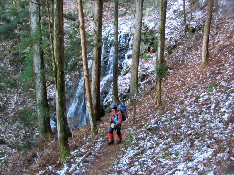 ![]() 登山口から1分ほどで不動滝に到着。 |