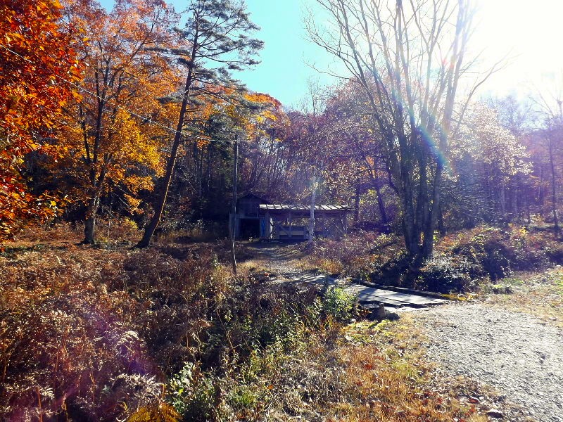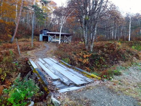 ![]() キャンプ場の一番奥にある駐車場手前より橋を渡ると登山口です。 |
