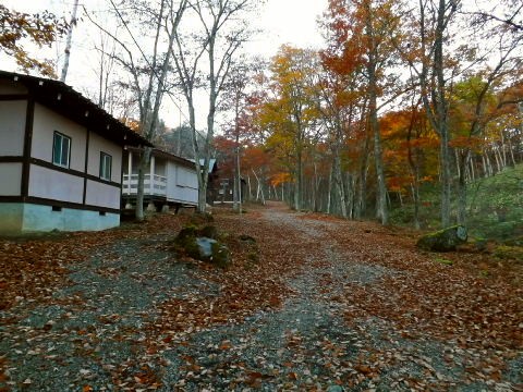 ![]() 気温は3℃ほど。キャンプ場内のメインスリートを上がっていきます。 |