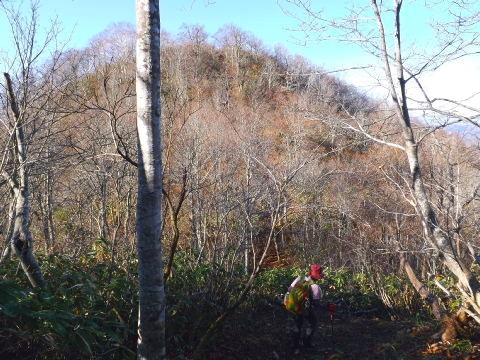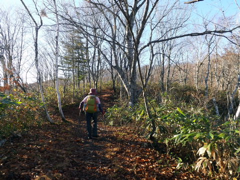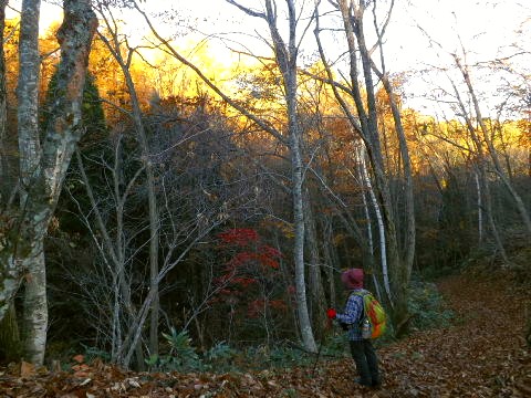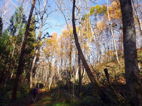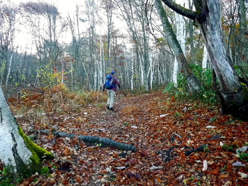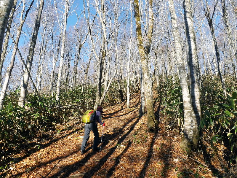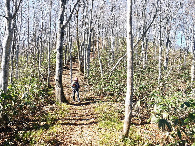 ![]() 「登山口から2時間内で山頂か」と思ったら違った。ブナ林の登山道。 |