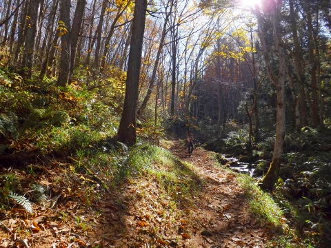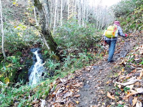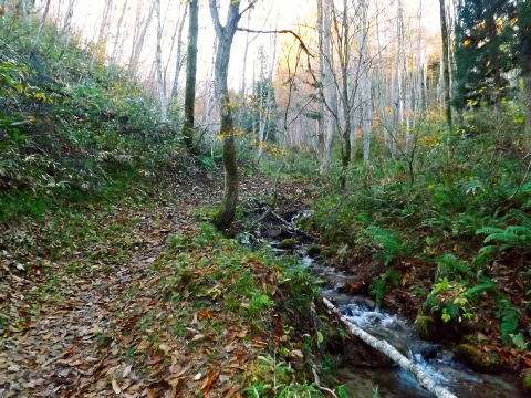 ![]() 少し先で左の小尾根を越し隣の小川へ。 |