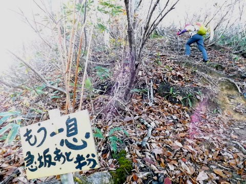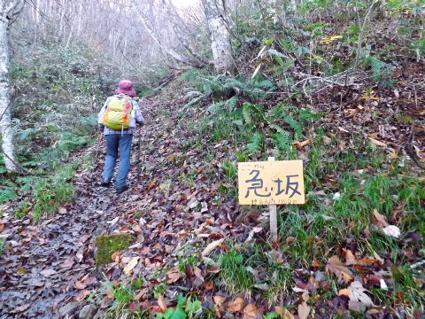 ![]() 急坂の始まり、ジグザグに斜面を登ります。 |