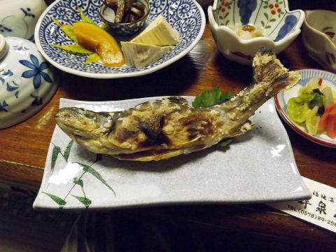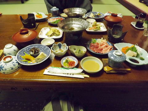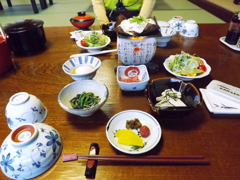 宿泊客は1人旅の女性と私達だけでした。 男湯のかけ流し風呂は私だけです。 夕食前・就寝前・朝風呂(細君は深夜にも)と 贅沢な気分を味わうことが出来ました。 |