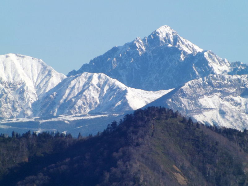 ![]() 中央は薬師岳だろう。だとすると左は立山、そして剱岳。 |
