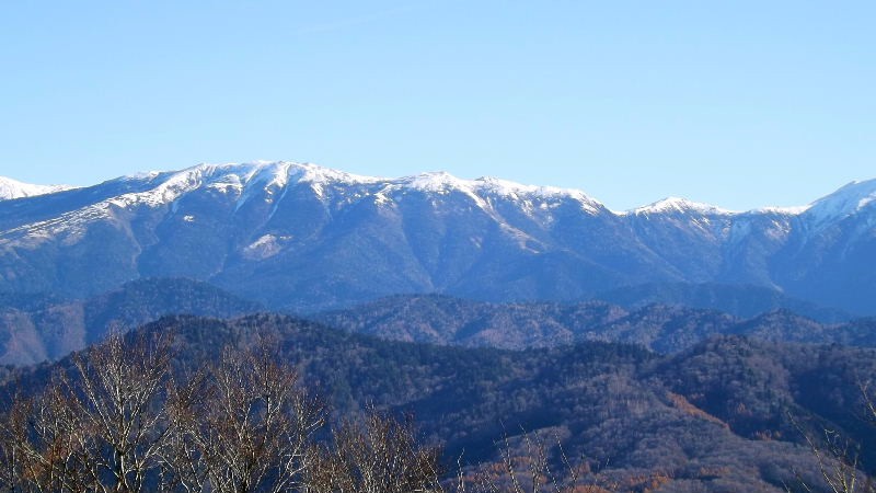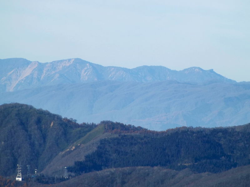 ![]() 先月23日に登った野谷荘司山(中央左) ・ 三方岩岳の飛騨岩(右)が見えています。 |