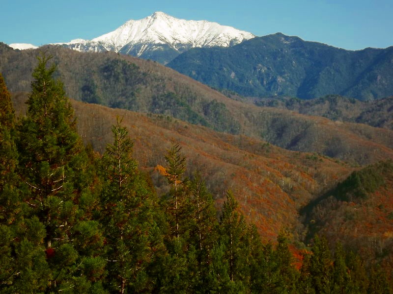 | 『山と渓谷社・岐阜県の山』の一番に記載されている天蓋山は北アルプスの眺望が広がる山之村の名峰とある。展望大好きな私としては「何時かは登りたい」と思っていた。 最適の山旅は冠雪した北アルプスと中腹の紅葉が観られることだが、紅葉は終わっているだろう。贅沢なことを言っていては登る機会が無くなってしまう。 4日水曜から3日間は晴の予報だ。水曜から登りたっかたが、最近の山離れから細君は新たな趣味として毎週水曜日に習い事を始めたので、一日遅れで出発することにした。 また、遠出をして一日だけの山旅では勿体ないので、翌日は福地山に登ることにする。 前日22時に枚方を出発。東海北陸道・清見ICから中部縦貫道で高山市へ。高山市からはナビに任せて走ると、県道88号から89号に入る。 カーブの多い89号は、道幅の狭く暗闇の山道で何処を走っているのかサッパリ分からずに緊張の連続。お陰で眠気は吹っ飛んでしまう。 上宝町で国道471号線に合流して安堵する。 見座発電所を過ぎると国道は左折するが数百m直進後に右折、片道1車線の走りやすい道路を山吹峠へカーブしながら上がっていく。峠を越すと真っ直ぐな下りになり、山之村キャンプ場に着く。(尚、冬季は山吹峠は通行止め、山之村牧場からキャンプ場へ向かうことになるようだ)。 3時前に到着し仮眠する。 325km |