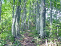 ![]() 下山道も素晴らしいブナ林が続く。 |