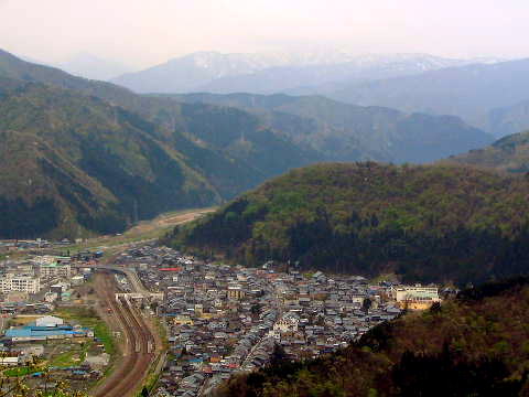 ![]() 極楽橋手前の展望台より。眼下に今庄の町と三周ヶ岳方面の山々 |