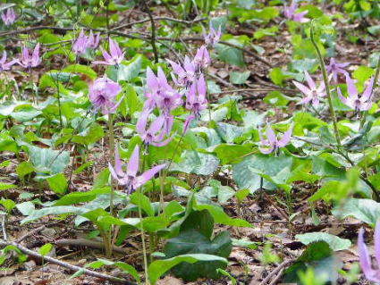 新緑のブナの原生林とカタクリに迎えられて楽しい山行だった。夕食では、コシアブラの天ぷらを食べながら今日の山行を思い出し楽しむ。