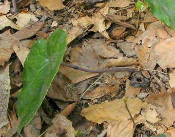 ![]() コシノカンアオイの葉と花 |
