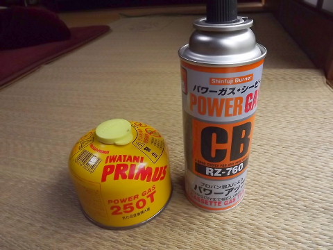 私はハイパワープリムスT型を使用しています。 ブタン75% プロパン25% ネットで、1万円以上で送料無料だったので以前に@460円で 災害用にもなるので購入。現在16本保管しています。 因みにプリムスT型ノーマルガスは ブタン65% イソブタン33% 他。 やはりカセットガスよりT型ボンベの方が火力はありそうです。 『プロパン入り』とあったので左のRZ−760を買ってみました。 プロパン含有量の記載がないのですが、 カセットガスの容器は5%未満と法律で決められているようです。 |